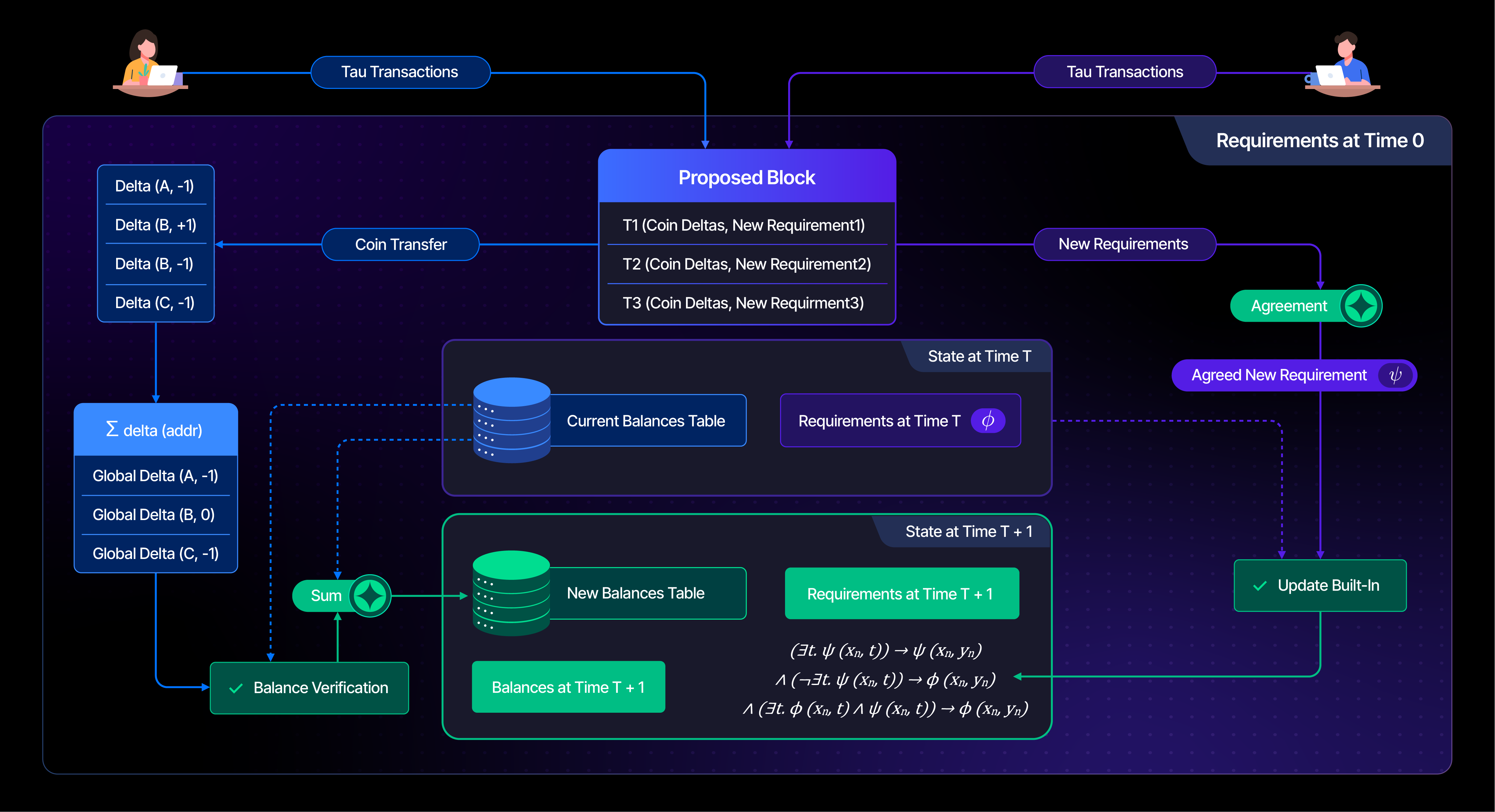 Tau Net is a blockchain automatically synthesized from the Collective Specification of its Participants with guaranteed accuracy. Its tokenomics, behavior, governance rules, and rules of changing the specification are defined within its specification.