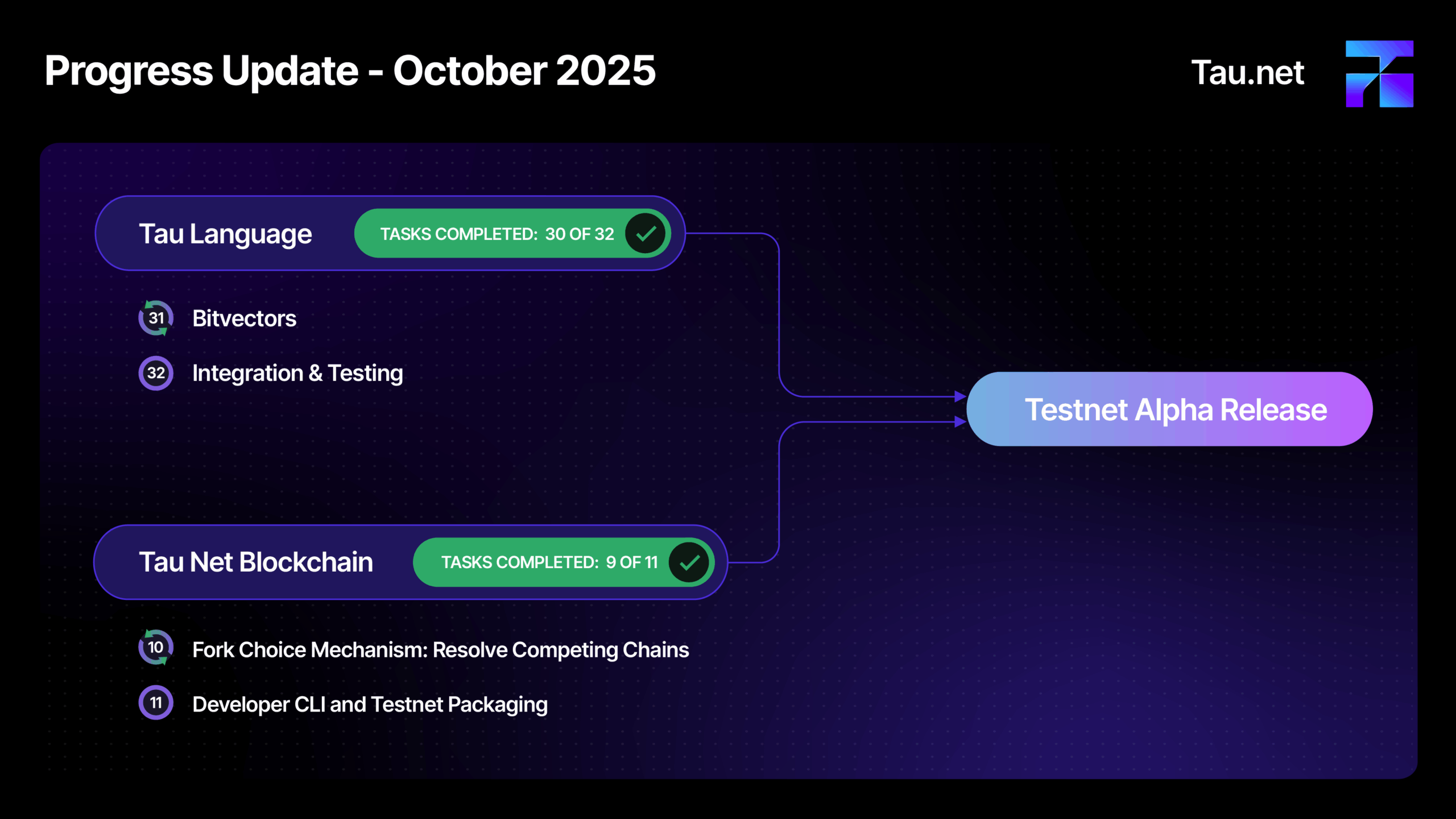 Functionality will increasingly shift to Testnet as arithmetic and tables are added to Tau Language, alongside expansion of the initial rules, smart contracts, and ease of use. Contribute by submitting useful requirements and testing features, to prepare the network for a seamless transition to Mainnet.